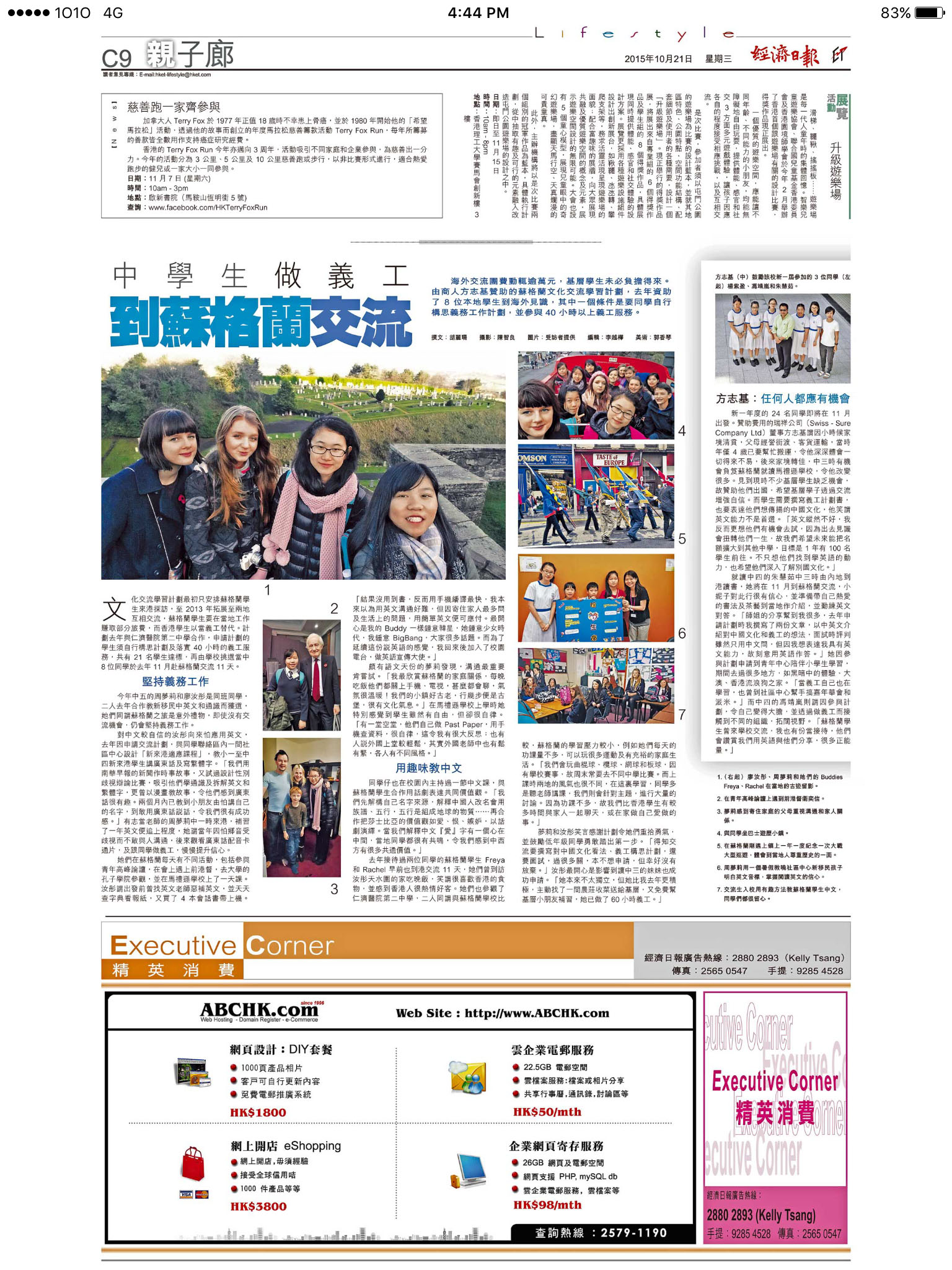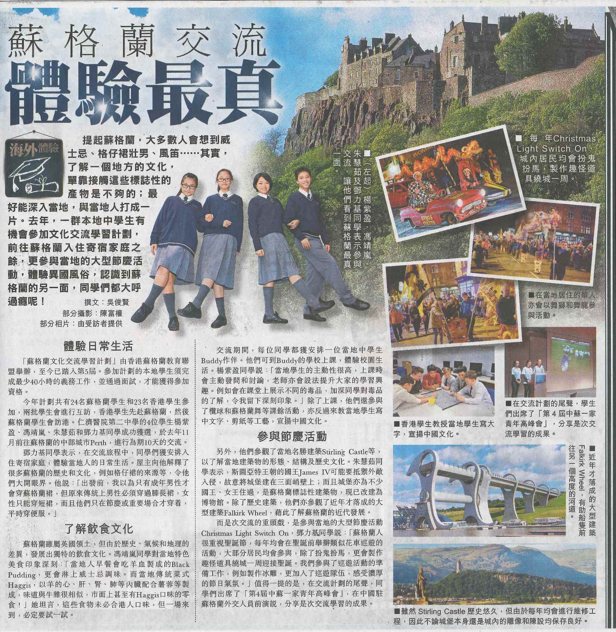 - 2015年10月21日 經濟日報-中學生做義工到蘇格蘭交流